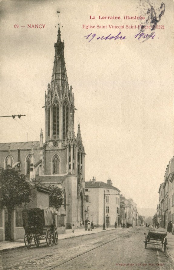 L’église Saint-Fiacre se situe au milieu de la rue de Metz, au nord du Cours Léopold, et a été conçue par l’architecte Prosper Morey.