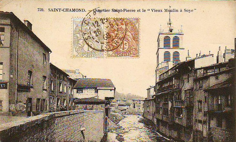 Saint-Chamond : Ville manufacturière, située au pied d’une colline, dans un joli bassin tapissé de vergers, de bosquets et de vignes, au confluent du Gier et du Janon, à 2 lieues 1/2 de Saint-Etienne. Chambre consultative des manufactures. Conseil des prud’hommes. Postes et Télégraphes. Population 7.475 habitants