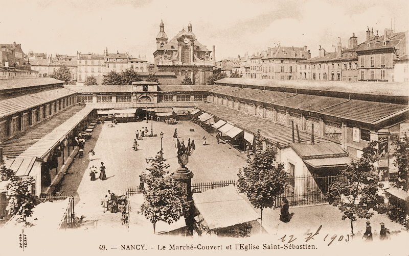 Deux fois par semaine, l’esplanade située entre l’église Saint-Sébastien de Nancy et le marché couvert est occupée par des étalagistes.